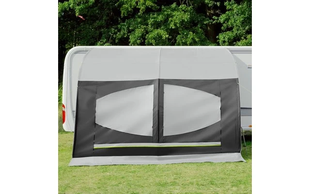 Überzeugt durch eine einfache Handhabung. Das Sonnendach wird mittels drei Fiberglasstäben und einer Querstrebe aus Aluminium aufgebaut. Die Fensterfolie kann durch innenliegende Fensterklappen blickdicht verschlossen werden. Kombination aus modernem Design und praktischem Nutzen.